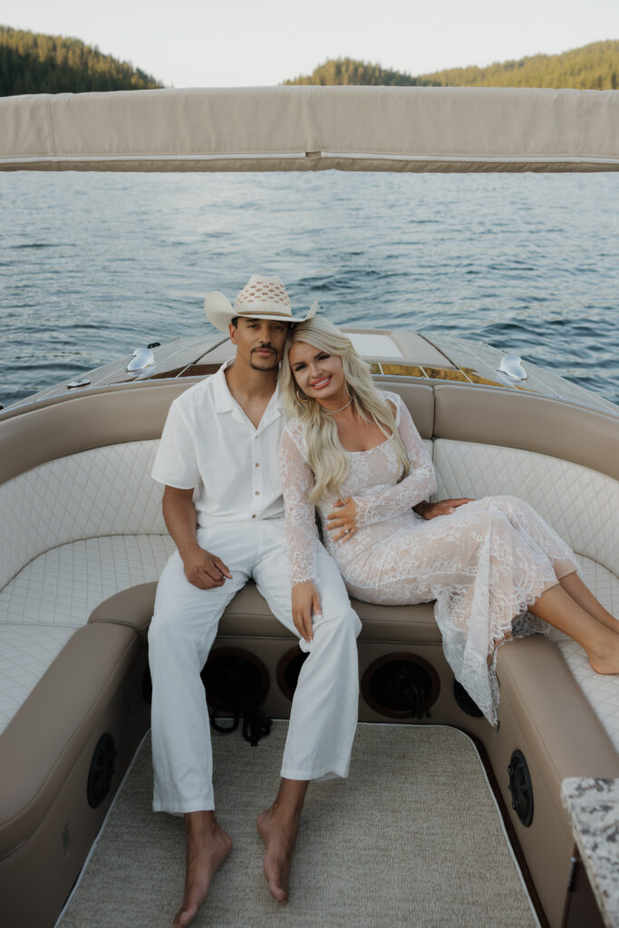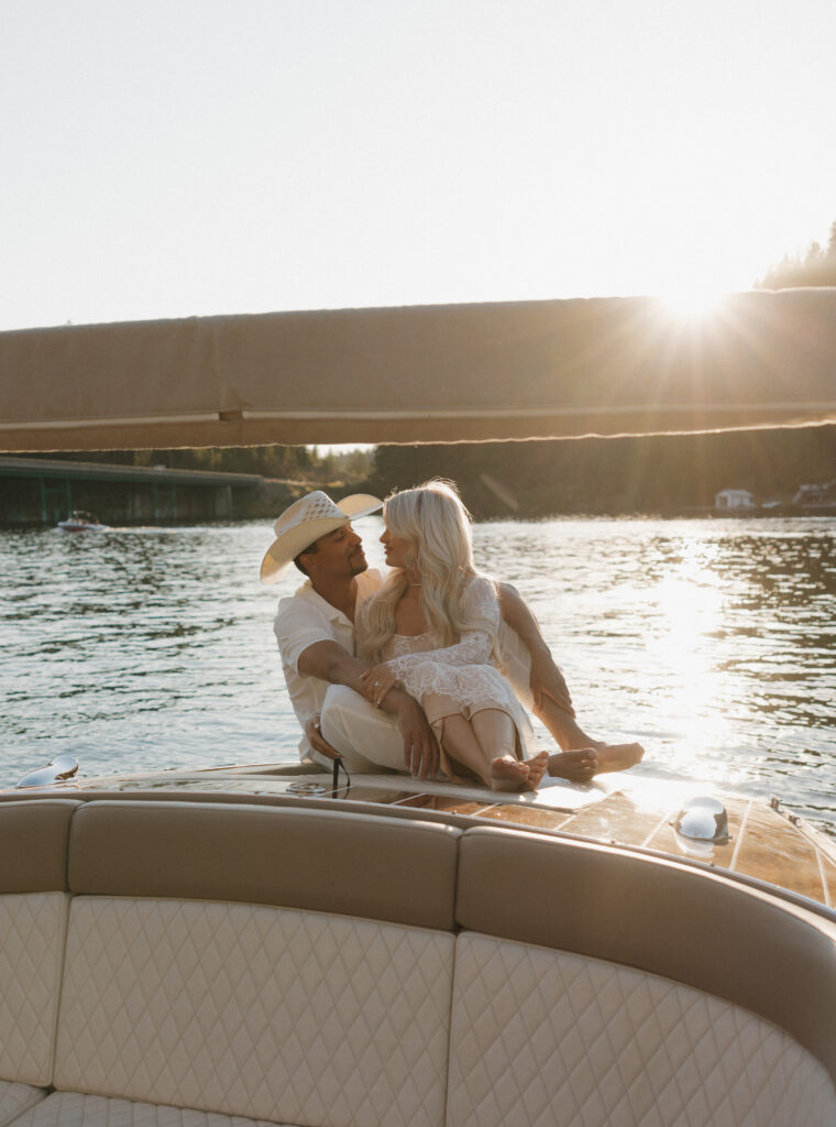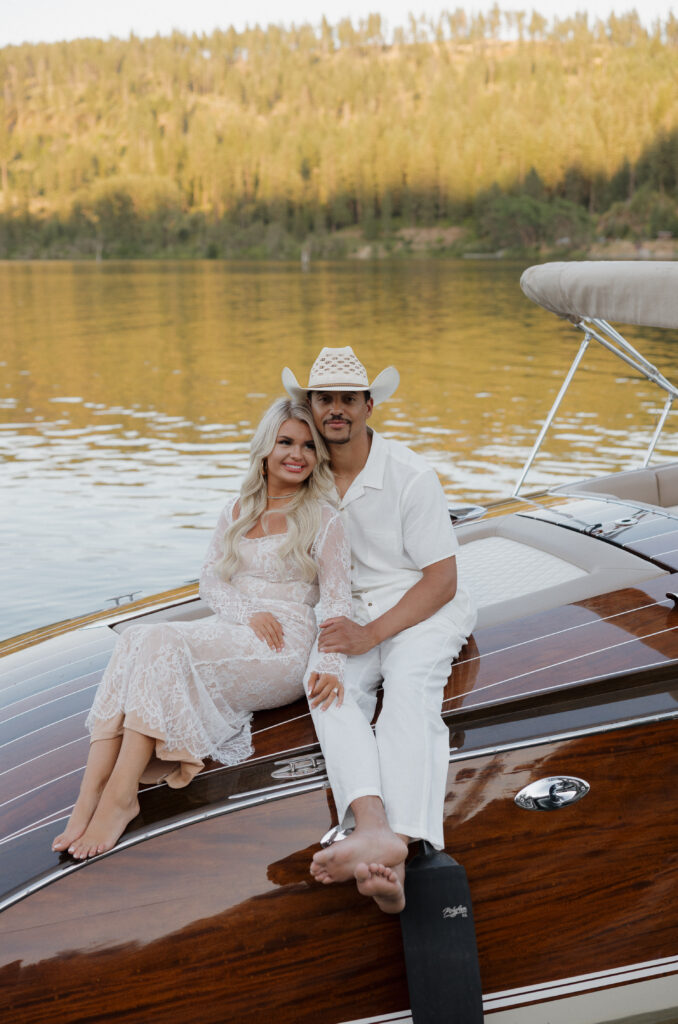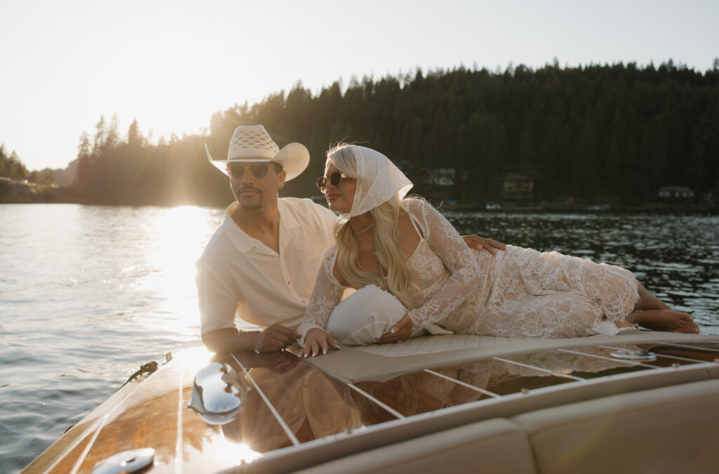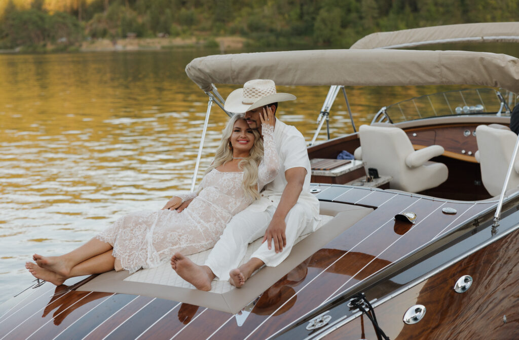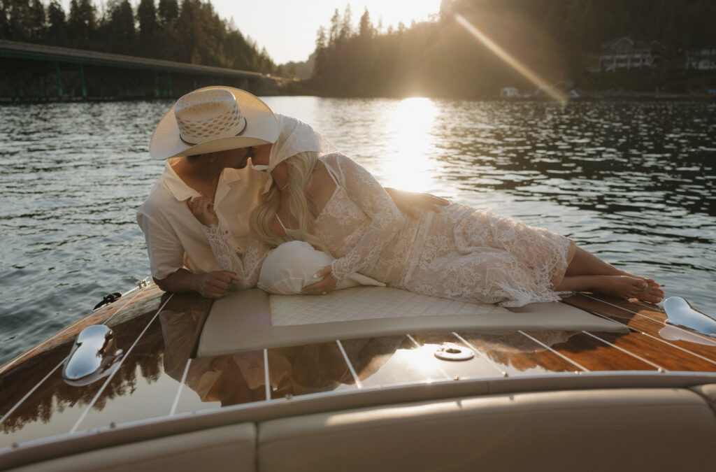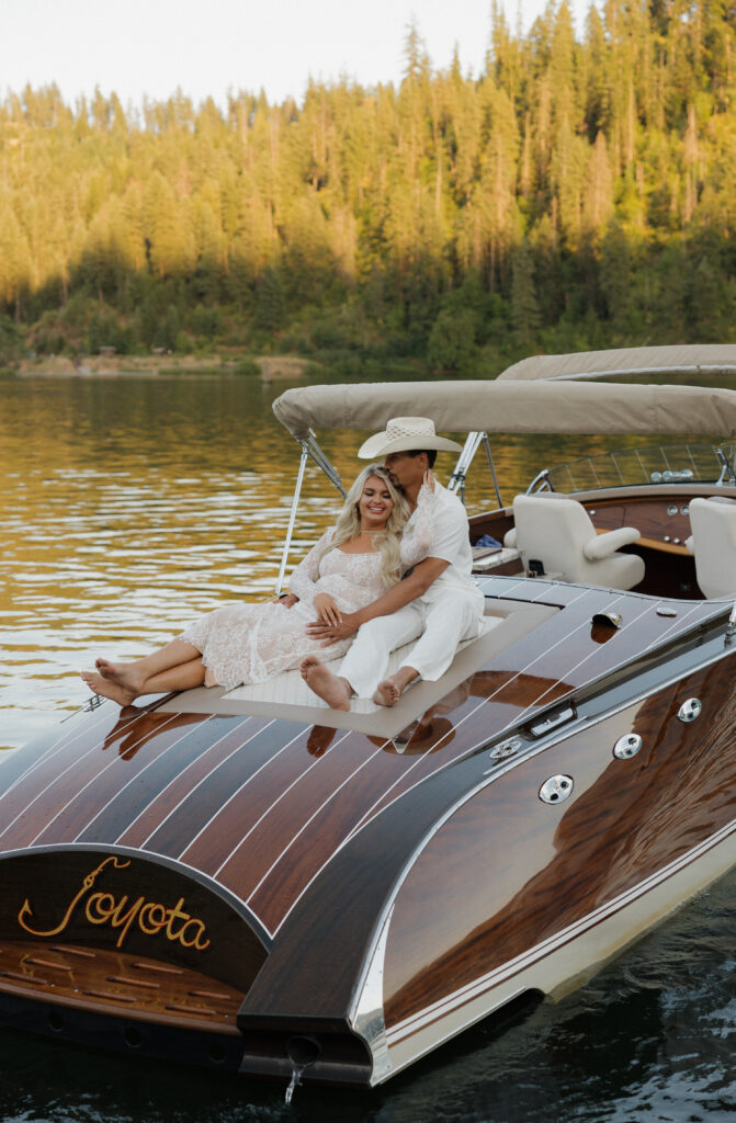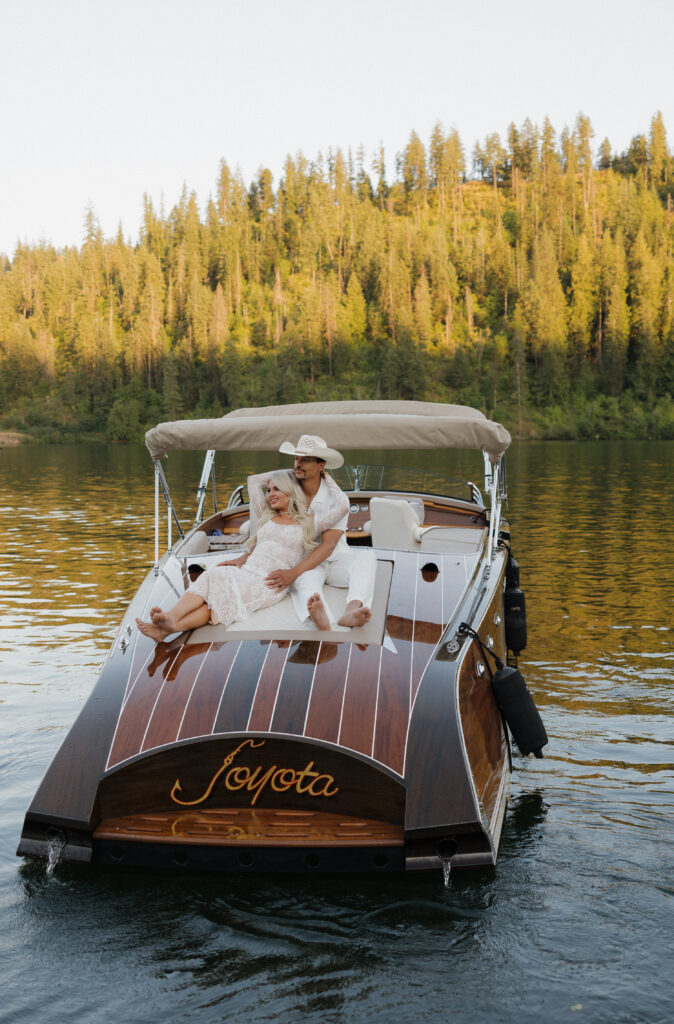 Nicole & Laj’s Coeur d’Alene engagements on the lake was a dream. I have photographed them the last few years and their love for each other always shines through in their photos. They wanted to do something unique for their engagements so we took them out on a wooden boat during sunset on their favorite lake.