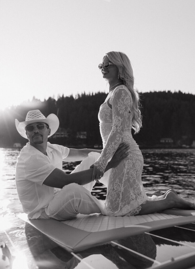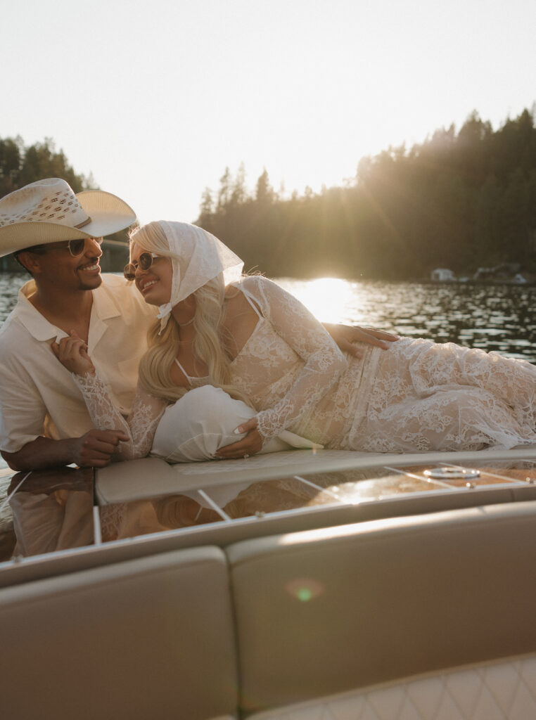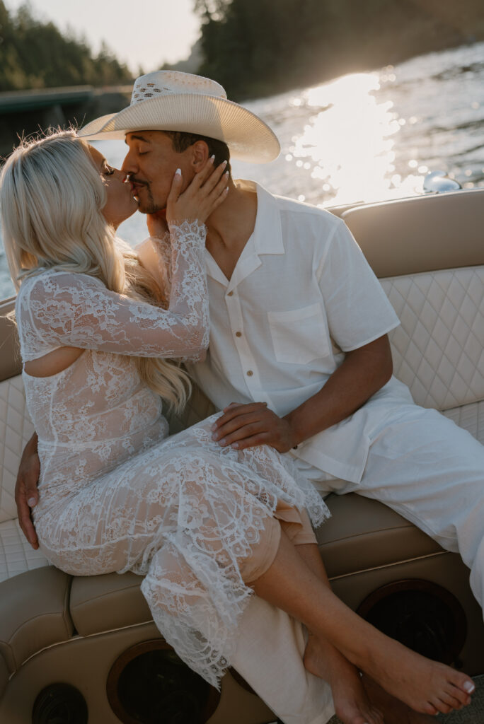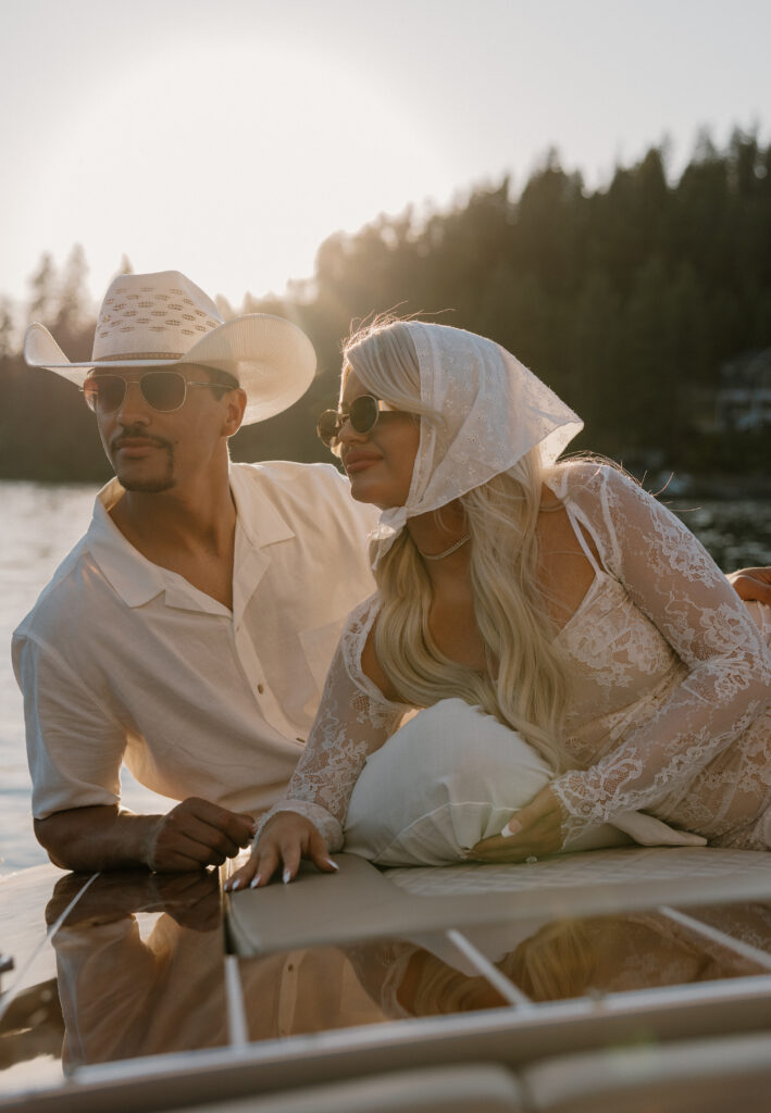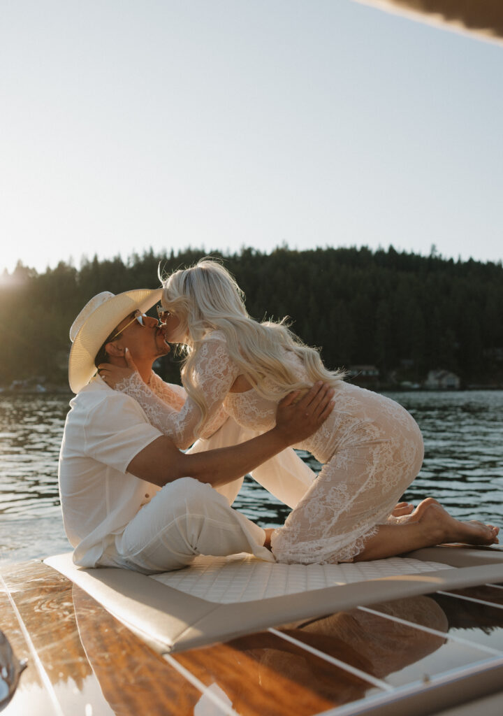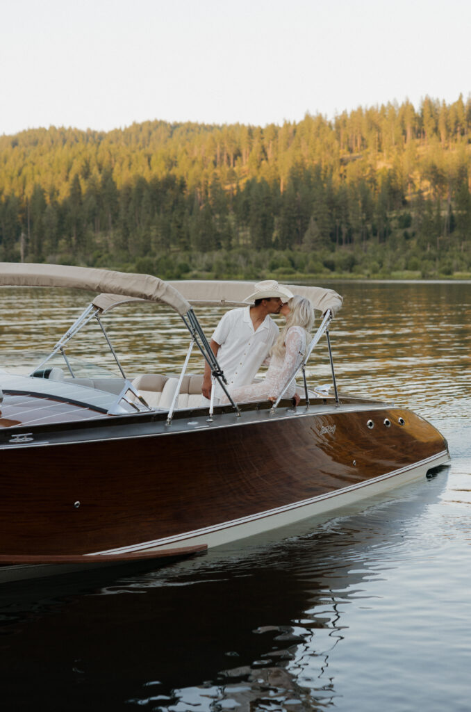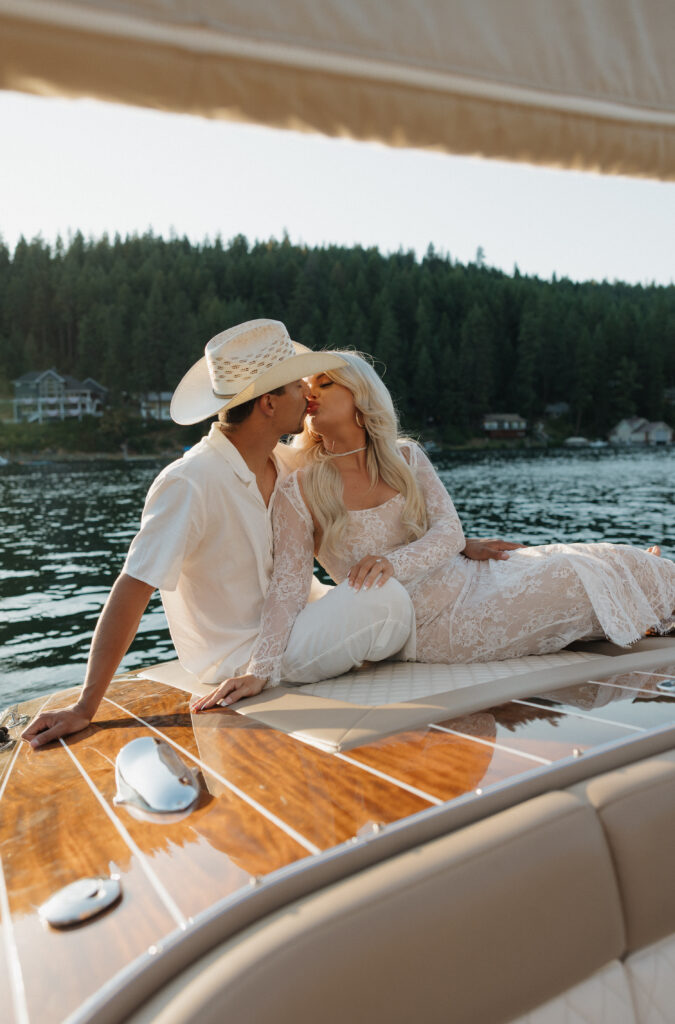Nicole & Laj’s Coeur d’Alene engagements on the lake was a dream. I have photographed them the last few years and their love for each other always shines through in their photos. They wanted to do something unique for their engagements so we took them out on a wooden boat during sunset on their favorite lake.